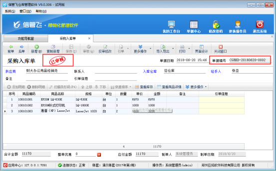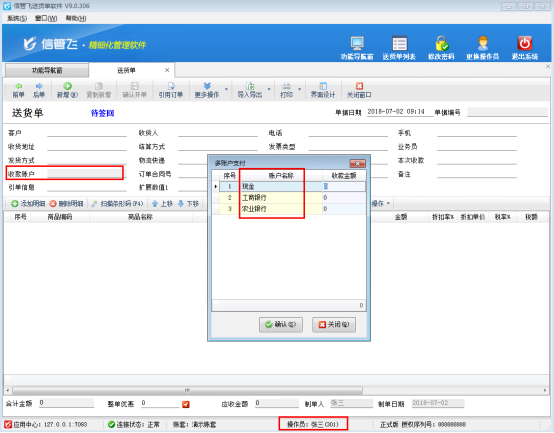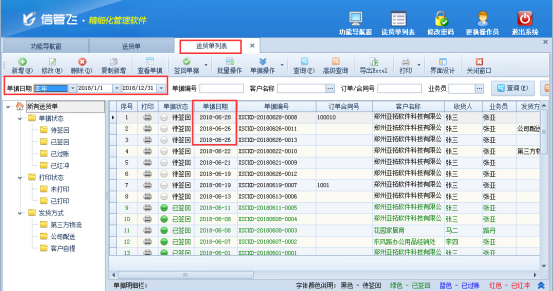 信管飛送貨單軟件、信管飛RMS軟件、信管飛倉庫管理軟件等都支持進行開單操作,對正式用軟件之前的單據補錄,或者中間單據少開的,軟件支持按照之前日期進行開單,可以開單修改單據日期為指定日期。 以信管飛送貨單軟件為例,示范下送貨單如何開其他日期的單據。 在功能導航窗選擇“業務處理”—》“新開送貨單”,進入新開單據界面,輸入單據主體和單據明細內容后,在單據日期處可以選擇其他日期,示例修改為日期:2018/6/26,修改后點擊“確認開單”保存當前單據,如下圖所