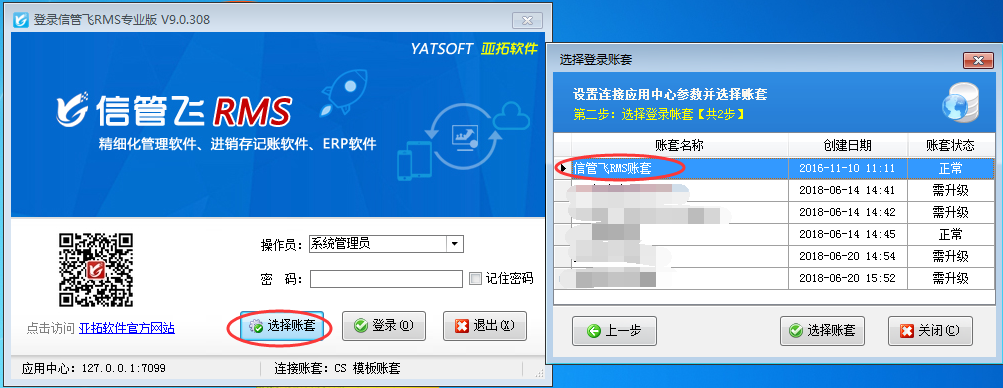 信管飛RMS、信管飛送貨單軟件、信管飛出納記賬軟件、信管飛倉庫管理軟件等都支持免費下載安裝試用。試用版本中會存在一個演示賬套。演示賬套中有演示數據,方便試用軟件功能(賬套即賬套數據庫,這是一個會計業務引申出來的概念,賬套數據庫中存儲業務數據)。如后續購買為正式版本,可以繼續使用演示賬套。為了區分賬套數據,軟件支持修改賬套的名稱。 以“信管飛RMS”為例,示范下如何修改賬套的名稱。打開紅色的應用中心程序(應用中心運行后桌面右下角會顯示相應的圖標,點擊即可打開應用中心主界面),在“賬套管理”界面,點擊賬套后選擇工具欄中的“修