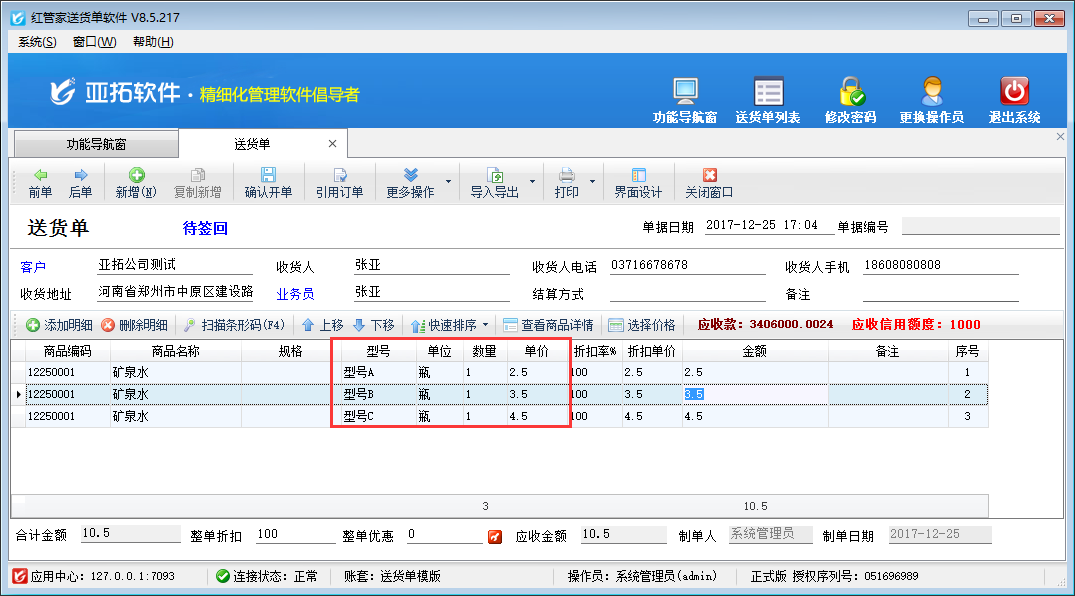亞拓管理軟件、紅管家送貨單軟件及紅管家倉庫管理軟件中可以設置同一商品不同的型號可以有不同的客戶價格,方便用戶管理同一個商品多型號的情況下不同客戶的最近銷售價格,本篇文章以紅管家送貨單軟件為例來詳細介紹一下如何啟用同一商品不同的型號有不同的客戶價格功能? 在功能導航窗點擊“系統管理”——》“系統參數設置”——》“業務參數”可以進入到“業務參數”配置界面,在業務單據價格參數內打勾啟用“同一商品不同的型號有不同的客戶價格”參數及“商品信息中用于錄入商品型號的擴展字段”參數,并設置參數值(擴展信息字段名),默認為“ext1(擴展