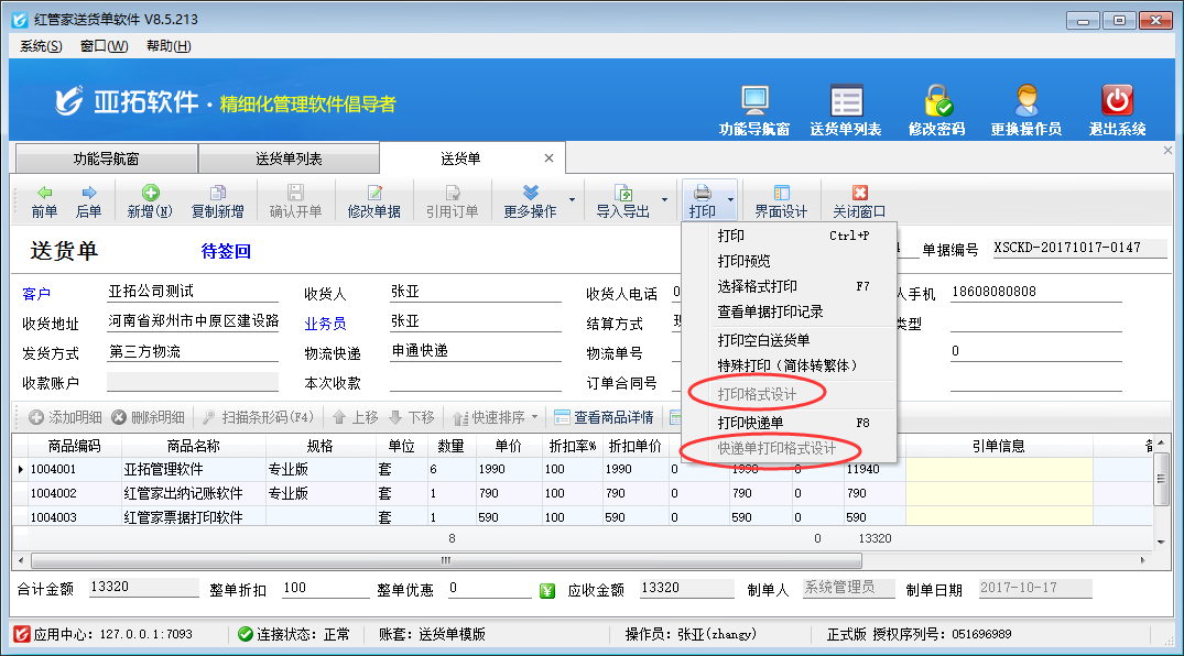 此文章相關(guān)演示視頻:打印模板如何顯示公司logo 亞拓軟件自主研發(fā)的亞拓管理軟件(星光版、標準版、專業(yè)版)、紅管家送貨單軟件和紅管家倉庫管理軟件支持打印銷售單和自定義設(shè)置打印模板,打印模板中支持添加公司logo等圖片。以紅管家送貨單軟件為例,示范下如何在打印模板中添加圖片? 首先,在導(dǎo)航欄選擇“業(yè)務(wù)處理”—》“新增送貨單”—》打印—》打印格式設(shè)計—》設(shè)計格式,進入打印模板的設(shè)計器界面,點擊左側(cè)工具欄的“插入圖片”把圖片放在設(shè)計器界面的“頁標