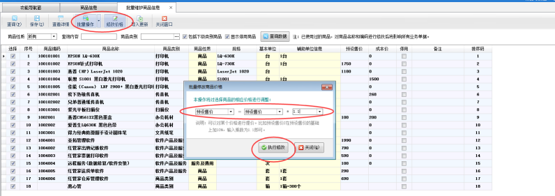 亞拓管理軟件、紅管家送貨單軟件、紅管家倉庫管理軟件等支持批量維護(hù)商品信息,可批量維護(hù)商品信息的價(jià)格、規(guī)格等信息。可以按照商品類別進(jìn)行分類維護(hù)。 批量維護(hù)商品信息需要操作員有操作權(quán)限(系統(tǒng)管理員默認(rèn)具有所有權(quán)限),如何設(shè)置操作員有批量修改商品信息的權(quán)限,操作步驟如下:系統(tǒng)管理員登錄軟件,打開“系統(tǒng)管理”→“操作員及授權(quán)”,選擇要添加權(quán)限的操作員,打開“其他操作權(quán)限”勾選上要選擇的權(quán)限,保存權(quán)限設(shè)置。具體如圖1所示:圖1 權(quán)限設(shè)置完成后,在功能導(dǎo)航窗選擇
