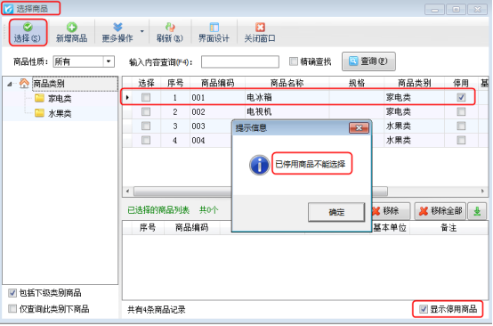 亞拓管理軟件、紅管家倉庫管理軟件及紅管家送貨單軟件都可以對商品信息進行管理,如果有些商品開過了單據,您以后不再使用該商品進行開單了,可以把該商品設置為停用狀態。已停用的商品無法被用于開單,選擇商品窗口可以隱藏已停用的商品。如何把不用的商品設置為停用呢?本篇文章以紅管家送貨單軟件為例詳細介紹一下送貨單軟件內如何把商品設置為停用狀態。 在功能導航窗點“基礎資料”→“商品信息”即可進入“商品信息”界面,如圖1所示,以商品“電冰箱”為例,選擇商品后,點擊“修改”按鈕,勾選“已停用”,然后點擊“保存”按鈕,此商品被設置為停用狀態了