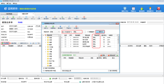 亞拓管理軟件、紅管家倉庫管理軟件和紅管家送貨單軟件開單時都支持選擇系統已錄入的商品信息,進行快速選擇商品來開單。開單時,選擇商品窗口,可以根據商品編碼、商品名稱、規格、條形碼等信息查詢商品,如果商品種類和商品名稱比較多,我們可以根據商品類別進行查詢。下面我們介紹一下在亞拓管理軟件專業版中銷售出庫單開單選擇商品時,根據“商品類別”查詢商品的操作步驟。 在功能導航窗點“銷售管理”—》“銷售出庫單”即可進入“銷售出庫單”界面。在銷售出庫單界面,點擊“添加明細”按鈕,系統彈出“選擇商品”窗口,如圖1所示。圖1 &nbs