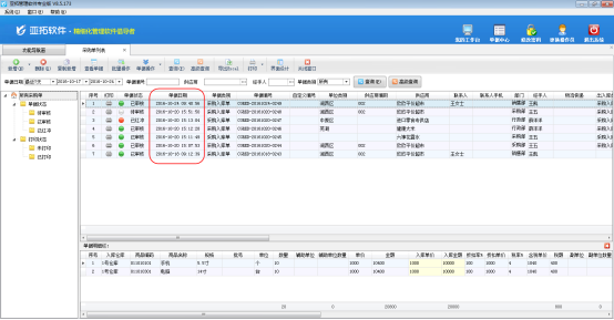 亞拓管理軟件、紅管家倉庫管理軟件、紅管家送貨單軟件、紅管家出納記賬軟件都可根據用戶自身業務特點進行自定義設置日期顯示格式,以滿足更多用戶的需求。下面我們以亞拓管理軟件專業版的采購單列表為例介紹一下日期顯示格式的設置過程。 登錄軟件,在功能導航窗點“采購管理”—》“采購單列表”即可進入“采購單列表”界面,如圖1所示,系統默認的日期格式是“YYYY-MM-DD”格式顯示的。圖1 在采購單列表界面點擊“界面設計”按鈕,系統彈出界面設計窗口,找到“單據日期”這個數據項后,對應的日期格式選擇為“