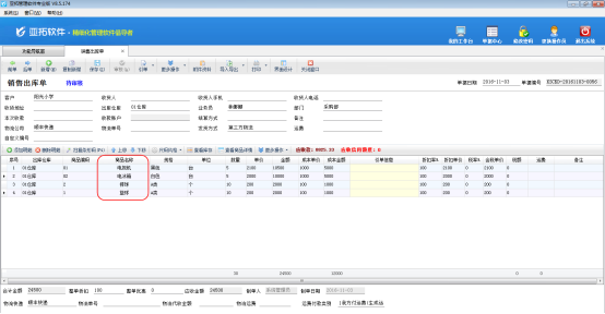 亞拓管理軟件、紅管家倉庫管理軟件、紅管家送貨單軟件、紅管家出納記賬軟件都可根據用戶自身業務特點進行自定義單據內容的對齊方式,以滿足更多用戶的需求。下面我們以亞拓管理軟件專業版的銷售出庫單為例介紹一下單據內容對齊方式的設置過程。 登錄軟件,在功能導航窗點“銷售管理”—》“銷售出庫單”即可進入“銷售出庫單”界面,如圖1所示,系統默認的單據內容對齊方式是居左對齊的。圖1 在銷售出庫單界面點擊“界面設計”按鈕,系統彈出界面設計窗口,在單據明細里面找到“商品名稱”這個數據項后,對齊格式選擇為“居