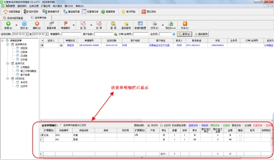 紅管家送貨單打印軟件是一款針對(duì)中小型企業(yè)開發(fā)的集送貨管理(發(fā)貨管理)、退貨管理(銷售退貨)、銷售收款(應(yīng)收款管理)等功能為一體的送貨管理及打印軟件(送貨單打印軟件、發(fā)貨單打印軟件、出貨單打印軟件、收據(jù)打印軟件、貨單票據(jù)打印軟件),可以輕松解決每天送貨業(yè)務(wù)量大,查詢、跟蹤、對(duì)賬麻煩的問(wèn)題。 在送貨單列表界面可以集中管理送貨單單據(jù),可以在送貨單列表下方明細(xì)欄內(nèi)詳細(xì)的查看送貨單的送貨明細(xì),最近有用戶反應(yīng)送貨單列表下方的明細(xì)欄沒有顯示出來(lái)(如下圖所示),對(duì)于此問(wèn)題該如何解決呢?下面我們?cè)敿?xì)說(shuō)明下如何讓送貨單列表下方的送貨單明細(xì)欄顯