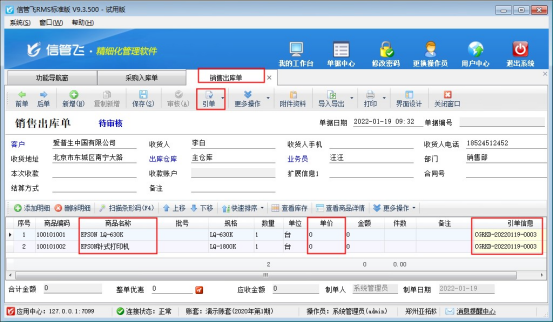 信管飛RMS軟件、信管飛送貨單軟件等支持打印銷售單,內(nèi)置打印模板默認(rèn)顯示單價和金額信息,有用戶需要開單界面顯示出單價和金額信息,在打印時不需要顯示出單價和金額信息,這種應(yīng)該如何設(shè)置?本文以“信管飛送貨單軟件”為例示范下。 新增一個送貨單,保存單據(jù)后預(yù)覽默認(rèn)模板顯示單價和金額,如下圖所示: 在送貨單開單界面,點(diǎn)擊打印按鈕下的“打印格式設(shè)計”,選擇此模板,點(diǎn)擊“設(shè)計格式”進(jìn)入模板設(shè)計器界面。在模板設(shè)計器中,把單價和金額對應(yīng)的明細(xì)數(shù)據(jù)項(xiàng)文本框雙擊打開,把里