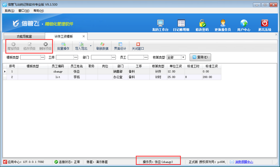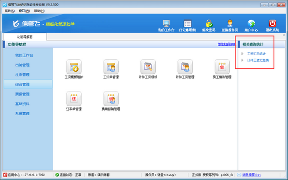 信管飛出納記賬軟件內(nèi)支持計件工資管理功能,可以對公司內(nèi)部根據(jù)計件進(jìn)行核算工資的員工工資進(jìn)行管理,本篇文章介紹一下出納記賬軟件內(nèi)如何設(shè)置操作員不可維護(hù)計件工資模板? 在功能導(dǎo)航窗點(diǎn)擊“系統(tǒng)管理”—》“操作員及授權(quán)”,打開操作員管理及授權(quán)界面,選擇操作員“張亞”,在其右側(cè)的功能模塊權(quán)限內(nèi)選擇“綜合管理”模塊,將“計件工資模板”的“新增、修改、刪除”權(quán)限勾選取消,然后保存設(shè)置,如下圖所示。 操作員權(quán)限設(shè)置完成后,關(guān)閉當(dāng)前窗口,更換操作員“張亞”登錄軟件,打開“綜合管理”—》“計件工資管理”界
