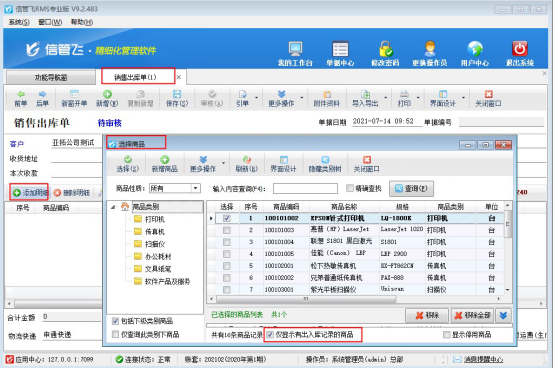 信管飛RMS軟件、信管飛倉庫管理軟件可管理商品的出入庫單據,有用戶需要出庫僅選擇有出入庫記錄的商品,避免選擇沒有入庫的商品。軟件支持設置選擇商品窗口只顯示有 出入庫記錄的商品,本文以“信管飛RMS軟件”為例,示范下如何啟用此參數? 在功能導航窗點擊“系統管理”—》“系統參數”,選擇“業務參數”中數據選擇參數打開,勾選參數“在選擇商品窗口只顯示有出入庫記錄的商品”保存配置,如下圖所示: 設置完成后,在“銷售管理”界面打開“銷售出庫單”,選擇客戶后點擊“