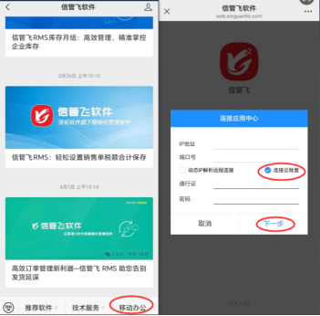 信管飛所有軟件都支持云賬套服務模式,數據存在云服務上,本地只要有網絡就可以登錄使用。可支持電腦端和手機端連接云端數據。云賬套購買后會分配通行證賬號和密碼。本文示范下云賬套模式如何登錄使用?一、電腦端使用 電腦只需要安裝云賬套版本程序(藍色圖標),登錄軟件點擊“選擇賬套”按鈕,彈出輸入界面,輸入通行證賬號和密碼,如下圖所示: 輸入通行證賬號和密碼后,點擊下一步會進入選擇登錄賬套界面,新賬號登錄需要新增賬套,在“管理賬套”中點擊新建賬套,輸入賬套名稱新