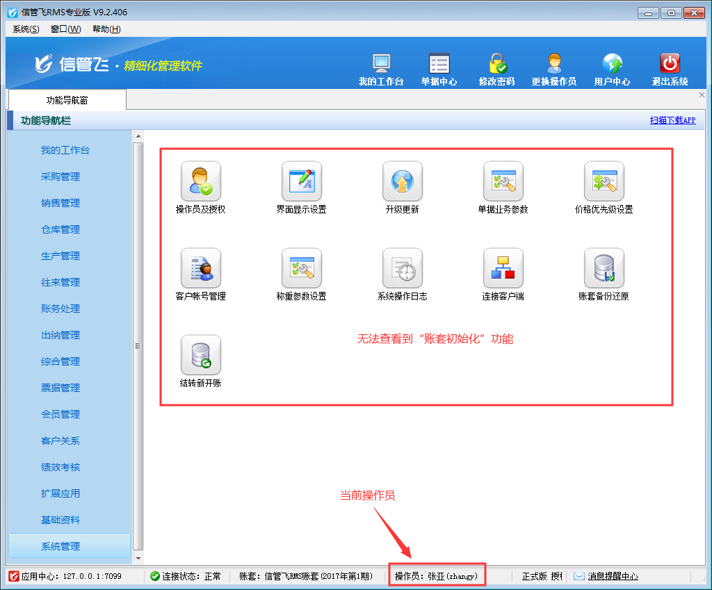賬套初始化一般用于在正式使用軟件前,對賬套中的數(shù)據(jù)進行初始化,以便重新錄入數(shù)據(jù)。一般在試用軟件期間會輸入一些試用的數(shù)據(jù),比如采購入庫單、銷售出庫單或一些訂單等信息,當試用結束后想刪除這些無用的數(shù)據(jù)錄入正式數(shù)據(jù)時,可以通過本系統(tǒng)的“帳套初始化”功能來一次性清除,方便快捷(如下圖所示)。 執(zhí)行賬套初始化操作后,會刪除賬套內(nèi)相應的數(shù)據(jù),因此務必提前做好備份,謹慎操作!為了避免操作員誤操作,導致數(shù)據(jù)丟失,軟件內(nèi)支持設置操作員不可進行賬套初始化操作,下面以信管飛RMS為例來演示一下具體的操作步驟。