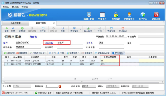 信管飛倉庫管理軟件、信管飛RMS軟件都具有采購、銷售、庫存管理模塊,商品出入庫如果可實時查看到商品庫存數(shù)量,則會更加方便管理商品的進(jìn)銷存。信管飛倉庫管理軟件和信管飛RMS軟件都支持讓入庫單和出庫單顯示當(dāng)前庫存數(shù)量,本文以“信管飛倉庫管理軟件”的銷售出庫單為例,示范如何顯示出當(dāng)前商品的庫存數(shù)量。 打開軟件的“銷售管理”模塊,新開一個銷售出庫單,在工具欄點擊“界面設(shè)計”選擇“單據(jù)明細(xì)”項,找到“當(dāng)前庫存數(shù)量”數(shù)據(jù)項并勾選上,保存界面設(shè)計,如下圖所示: 界