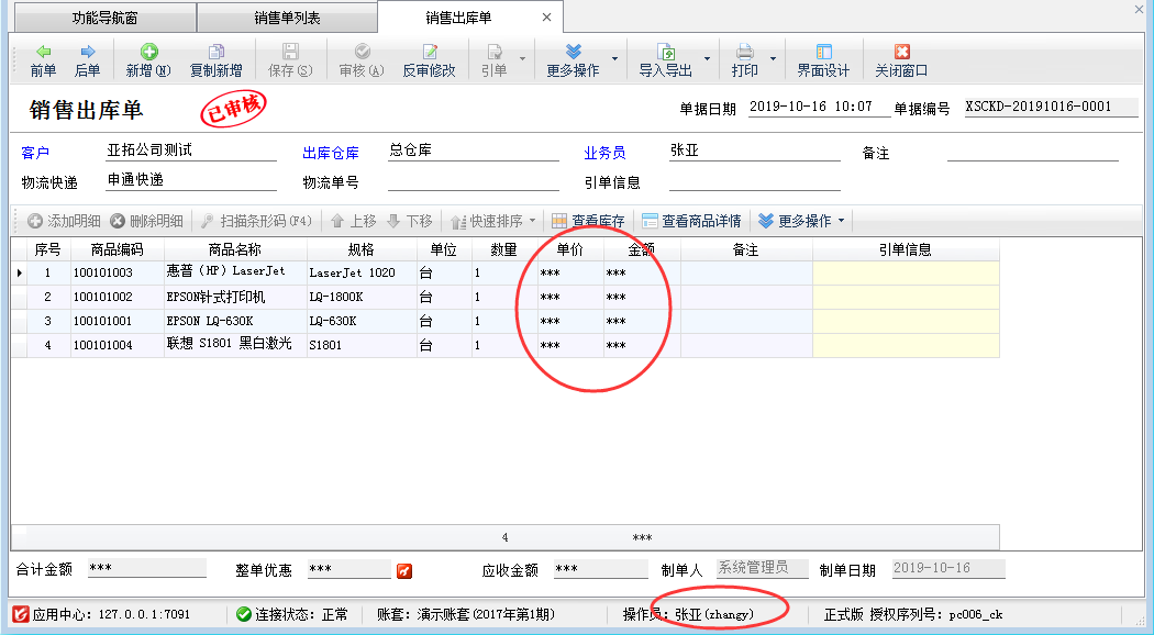 信管飛倉庫管理軟件支持多個操作員登錄使用軟件,可以對不同的操作員設置不同的權限。有些客戶不允許操作員查看商品銷售價,軟件支持在“操作員管理及授權”中設置操作員不能查看銷售價格,下面我們詳細介紹一下操作員不可查看商品銷售價的設置方法。 登錄信管飛倉庫管理軟件,在功能導航窗點擊“系統管理”—》“操作員及授權”,即可進入“操作員管理及授權”界面,如下圖所示,以操作員“張亞”為例,鼠標選中操作員后,點擊“其他操作權限”,取消勾選“查看商品銷售價”,然后點擊“保存權限設置”即可。 權限設置好后,