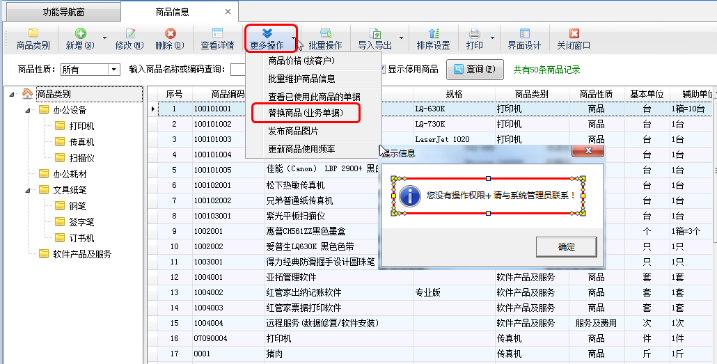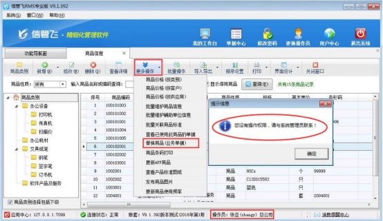 信管飛RMS、信管飛倉庫管理軟件、信管飛送貨單軟件等支持設(shè)置多個操作員登錄軟件,對登錄的操作員軟件可控制操作員權(quán)限。開單過程中可能存在單據(jù)商品信息輸入錯誤現(xiàn)象,可在基礎(chǔ)資料—》商品信息中對錯誤商品進(jìn)行替換。為避免多個操作員重復(fù)替換出錯,可設(shè)置操作員不可批量替換商品(業(yè)務(wù)單據(jù))的權(quán)限,指定一個操作員允許操作。 本文以信管飛送貨單軟件為例,在功能導(dǎo)航窗點擊“系統(tǒng)管理”—》“操作員及授權(quán)”進(jìn)入操作員管理及授權(quán)界面,如下圖所示:選擇操作員“張亞”,在右側(cè)權(quán)限設(shè)置界面,選擇“其他操作權(quán)限”,把權(quán)限“可操作商品信息中的‘替換商品(業(yè)