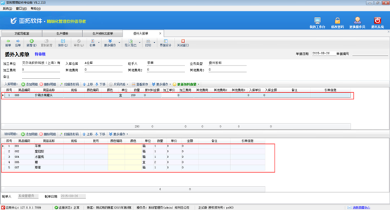 生產管理模塊的生產領料單、委外入庫單和委外領料單中可以用到生產模板,如果商品有生產模板則自動根據生產模板生成領料明細,從而省去手動選擇商品的繁瑣步驟,節省用戶的寶貴時間。如圖5、圖6和圖7所示。