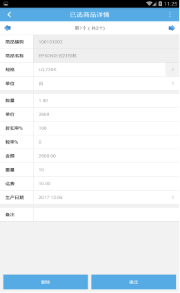 PC端配置完移動APP的界面后打開銷售出庫單界面,界面顯示如下圖6所示(點擊單據明細的商品信息可以顯示出商品的詳情信息):