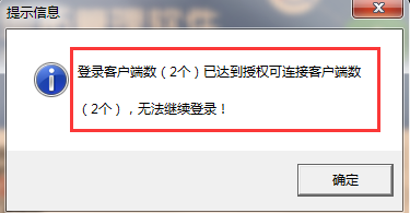 登錄時(shí)如果出現(xiàn)如下提示,說(shuō)明連接用戶數(shù)已經(jīng)超過(guò)所購(gòu)買(mǎi)的云應(yīng)用用戶數(shù)。如果需要升級(jí)增加云應(yīng)用用戶數(shù),可聯(lián)系我們客服。