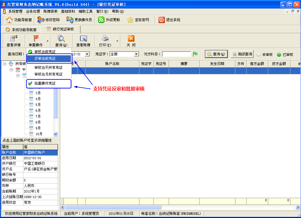 3、日記賬憑證支持反審功能,此功能僅系統(tǒng)管理員可使用。