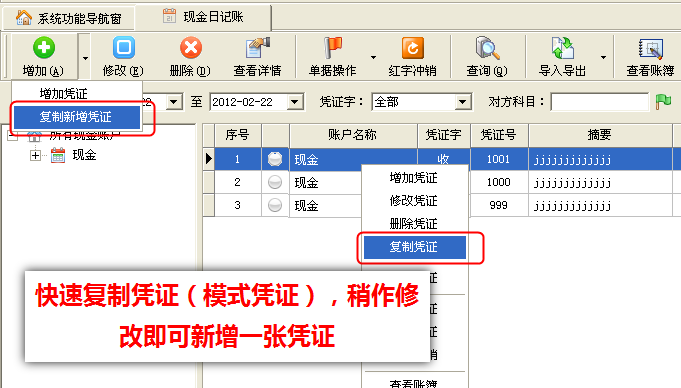 2、支持模式憑證,可復(fù)制新增憑證。