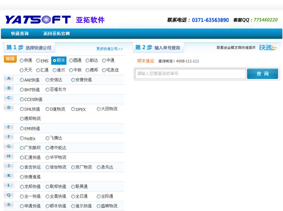 為了方便大家跟蹤我公司軟件產品配送情況,亞拓軟件官網增加快遞物流單查詢功能。我們非常理解大家購買產品后急切等待的心情,正如我們在淘寶網站上購買一件心意的寶貝一樣,有時還夾雜著一種不安的心情,擔心貨是否已經發出、不會有問題吧、多長時間能到,時不時的會到物流網站上查看一下。 我們推出的這個快遞單查詢功能,直接接駁各大物流網站數據,不需要輸入驗證碼,一站