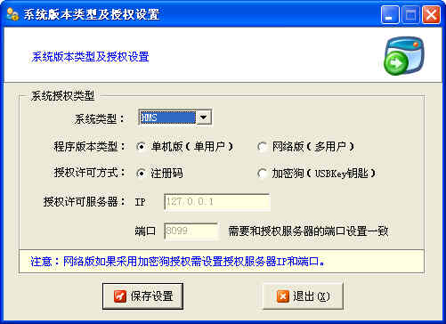 系統(tǒng)版本類型及授權(quán)類型設(shè)置工具,可以更改亞拓軟件產(chǎn)品的授權(quán)類型。主要包括程序版本類型:單機(jī)版(單用戶)、網(wǎng)絡(luò)版(多用戶);授權(quán)許可方式:注冊碼版、加密鎖(USB key);授權(quán)許可服務(wù)器IP地址及端口號。