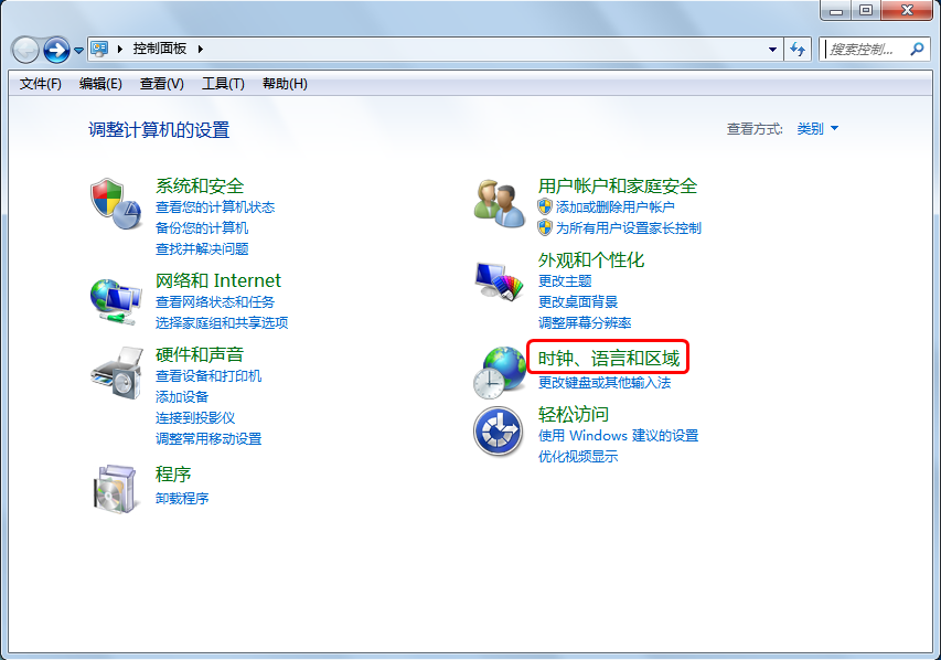 在控制面板中找到“時(shí)鐘、語(yǔ)言和區(qū)域”