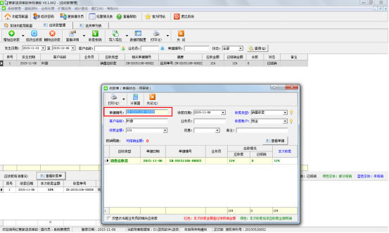 這時(shí)我們可以關(guān)閉此窗口,然后點(diǎn)擊下方的應(yīng)收款結(jié)銷情況中的“查看收款單”按鈕,可以在收款單頁(yè)面看下收款單的單據(jù)編號(hào)并記錄下,或者是將收款單號(hào)復(fù)制一下,如圖二所示。