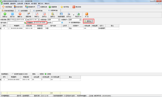 將收款單的單據(jù)編號(hào)記下之后,可以回到功能導(dǎo)航窗頁(yè)面,點(diǎn)擊“業(yè)務(wù)處理”—》“收款單列表”,在收款單列表頁(yè)面選擇收款日期并輸入我們剛剛記錄的收款單單據(jù)編號(hào)進(jìn)行查詢,將我們此前核銷錯(cuò)誤的那張收款單單據(jù)查詢出來(lái),如圖三所示。