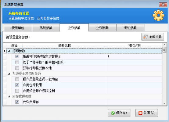 在功能導航窗點“系統(tǒng)管理”—》“業(yè)務參數(shù)設置”即可進入“業(yè)務參數(shù)設置”界面,如下圖1所示: