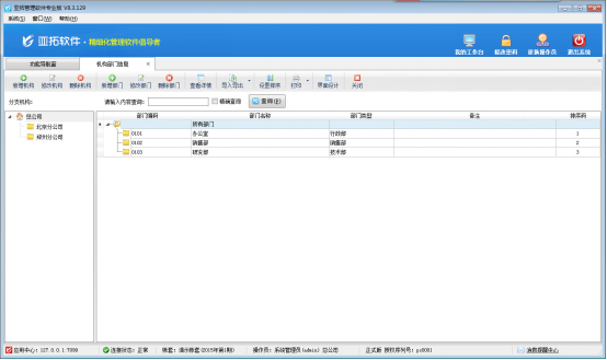 亞拓管理軟件中如何對機構部門進行維護