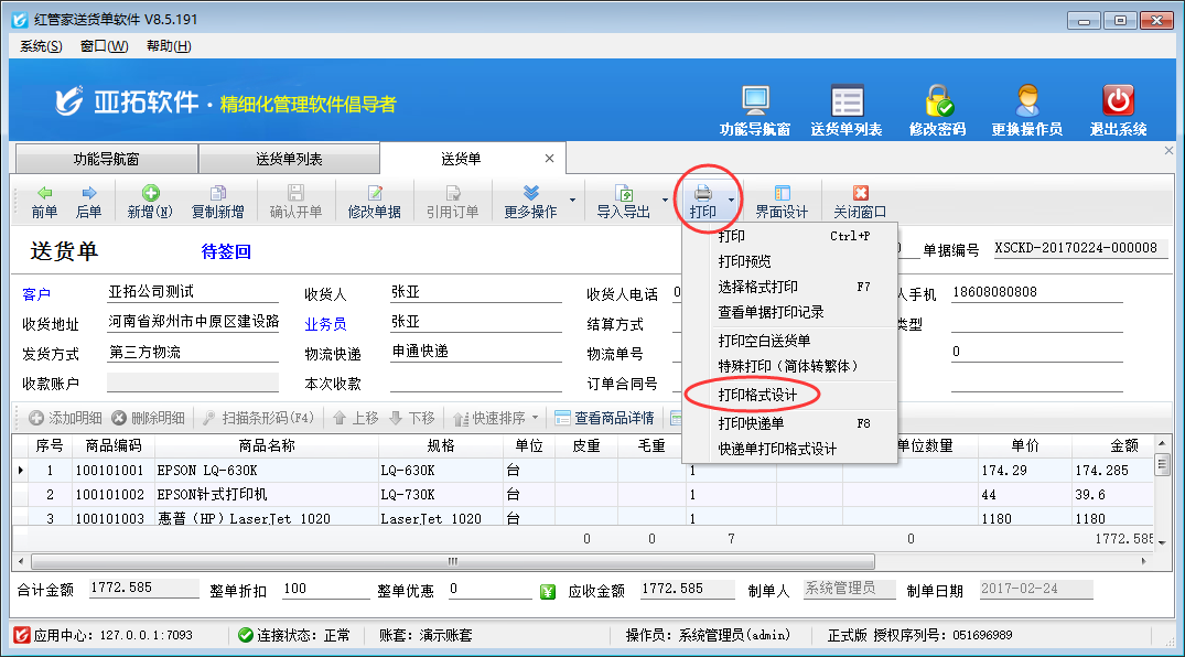 歡迎免費下載試用這款可以自定義打印格式樣式送貨單打印軟件紅管家送貨單軟件