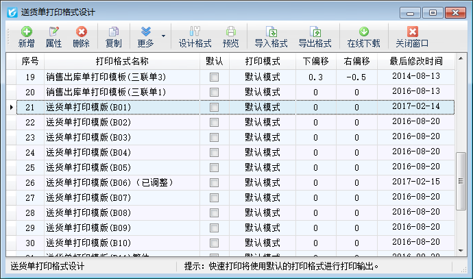 亞拓管理軟件紅管家倉庫管理軟件紅管家送貨單軟件紅管家出納記賬軟件等軟件內都支持自定義打印格式模版,可以更方便、靈活的定制打印輸出內容和格式,有時我們在打印一類單據時可能會用到多個打印格式模版,其中一個打印格式模版為常用的,其他的為不常用的打印樣式,此時我們可以將常用的打印格式模版設置為默認,設置為默認打印格式模版后打印單據時可以使用此默認打印格式模版進行快速打印。