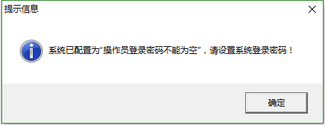 設(shè)置完成后,我們使用操作員賬號(hào)登陸軟件時(shí),系統(tǒng)會(huì)提示“系統(tǒng)已配置為‘操作員登陸密碼不能為空’,請(qǐng)?jiān)O(shè)置系統(tǒng)登陸密碼!”,如下圖二所示。