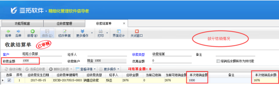客戶全部正常結(jié)銷應(yīng)收款,收款部分金額=本次結(jié)銷部分金額。