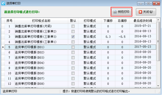 在送貨單打印窗口,選擇需要打印的格式后點擊“預(yù)覽打印”按鈕可以查看打印預(yù)覽效果,如圖3所示,預(yù)覽后進行正常打印即可。