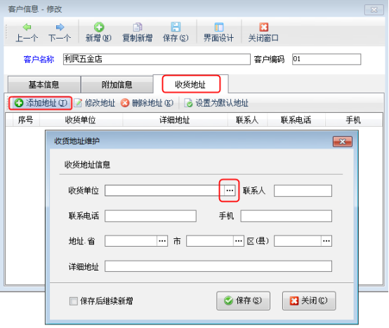 紅管家送貨單軟件、紅管家倉庫管理軟件、亞拓管理軟件開單時(shí)都可以錄入多個(gè)收貨地址,以滿足部分客戶有多個(gè)收貨地址的情況。下面我們以紅管家送貨單軟件為例介紹一下錄入多個(gè)收貨地址的具體的操作步驟。