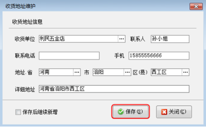 如圖2所示,點(diǎn)擊“添加地址”按鈕,系統(tǒng)彈出“收貨地址維護(hù)”窗口,選擇一下收貨單位。然后錄入一下地址信息,如圖3所示,錄入信息后保存。保存后可以在收貨地址界面看到剛才新增的地址記錄,如圖4所示。