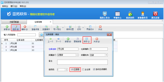 歡迎免費下載試用這款可把不用的倉庫設置為停用的進銷存管理軟件亞拓管理軟件