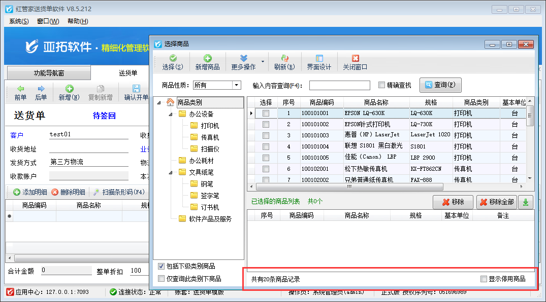 歡迎免費下載試用這款可以設置選擇商品時僅顯示客戶相關商品的送貨單打印軟件:紅管家送貨單軟件。
