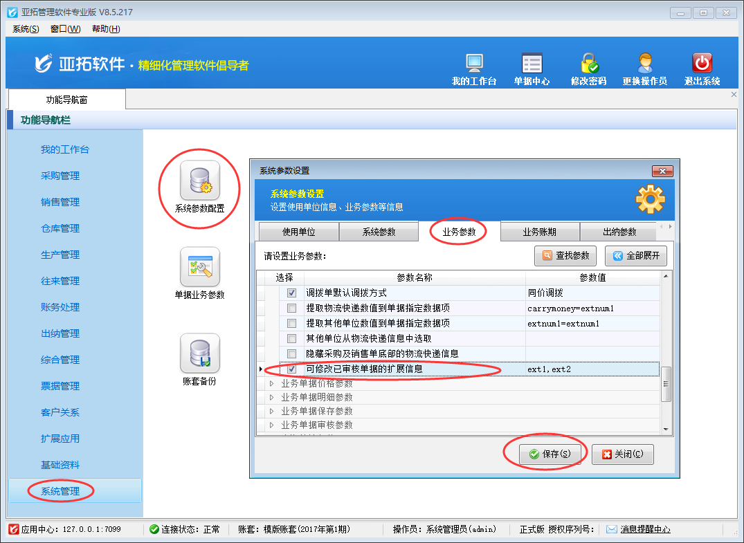 “可修改已審核單據(jù)的擴(kuò)展信息”參數(shù)是V8.5.217版本增加的功能,升級(jí)到最新版本即可使用此功能。
