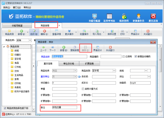 紅管家送貨單軟件、亞拓管理軟件、紅管家倉(cāng)庫(kù)管理軟件都支持管理商品信息,支持開(kāi)單后直接選擇提前維護(hù)好的商品信息資料,有的商品存在商品備注信息,本文章介紹如何在開(kāi)單的時(shí)候選擇商品后把商品信息中的備注信息直接獲取過(guò)來(lái)。不需再在開(kāi)單時(shí)候再次輸入。