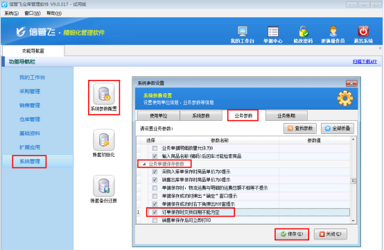 信管飛RMS(進銷存記賬軟件)、信管飛倉庫管理軟件信管飛送貨單軟件等都可以設置訂單保存時交貨日期不能為空,本篇文章以信管飛倉庫管理軟件為例介紹一下如何設置訂單保存時交貨日期不能為空。