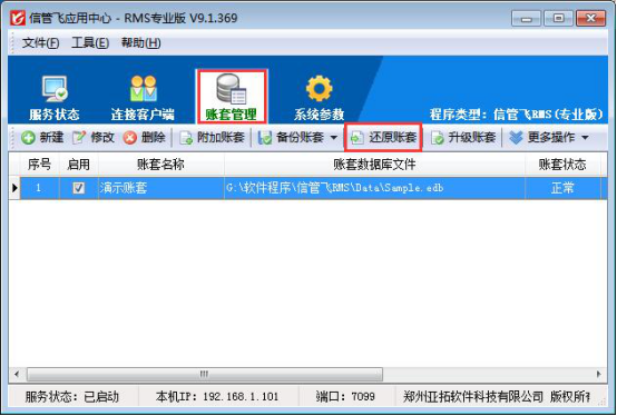 本文以“信管飛RMS軟件”為例,示范如何還原備份賬套數(shù)據(jù)。
