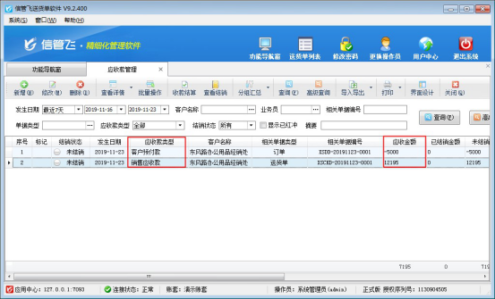信管飛送貨單軟件、信管飛RMS軟件等支持錄入客戶的預付款,客戶預付款是指客戶付定金給我們,在實際發(fā)貨后會收回應收款,此時軟件收款結(jié)算中支持客戶應收款可以抵消之前客戶的預付款。本文以“信管飛送貨單軟件”為例,示范下應收款如何抵消客戶預付款?