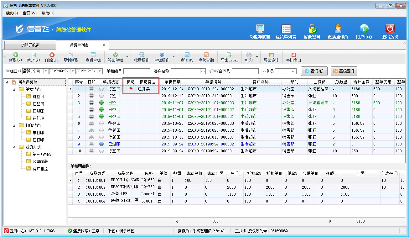 歡迎免費(fèi)下載試用這款可以對送貨單列表標(biāo)記備注的送貨單打印軟件:信管飛送貨單軟件。