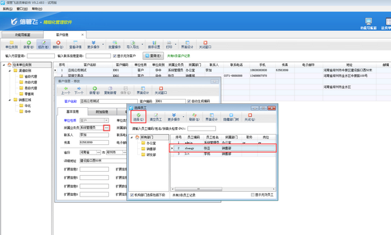 設(shè)置選擇的客戶所屬業(yè)務(wù)員為員工“張亞”。如下圖所示: