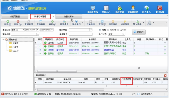 信管飛RMS軟件、信管飛送貨單軟件等都支持先開(kāi)訂單,出庫(kù)單可引用訂單開(kāi)單,出庫(kù)單審核完成引用的訂單執(zhí)行狀態(tài)會(huì)自動(dòng)更新,執(zhí)行狀態(tài)更新情況:出庫(kù)數(shù)量<訂單數(shù)量,訂單執(zhí)行狀態(tài)變?yōu)椴糠滞瓿桑鰩?kù)數(shù)量=訂單數(shù)量,訂單執(zhí)行狀態(tài)變?yōu)橐淹瓿伞?/P>