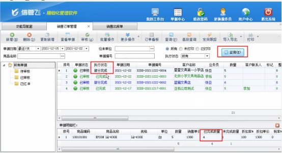 目前軟件對(duì)于手動(dòng)標(biāo)記為已完成狀態(tài)的訂單,后期如修改引用此訂單的出庫(kù)單數(shù)量,只要小于訂單數(shù)量,手動(dòng)標(biāo)記完成的訂單執(zhí)行狀態(tài)仍會(huì)自動(dòng)更新,變?yōu)椴糠滞瓿桑缦聢D:
