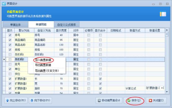 二、界面設計配置導出導入操作