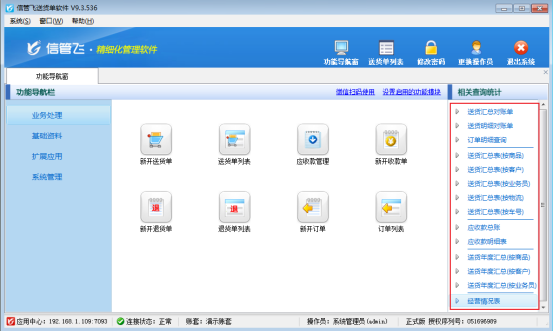 歡迎下載試用這款支持各類統(tǒng)計(jì)查詢報(bào)表的送貨單打印軟件:信管飛送貨單軟件。